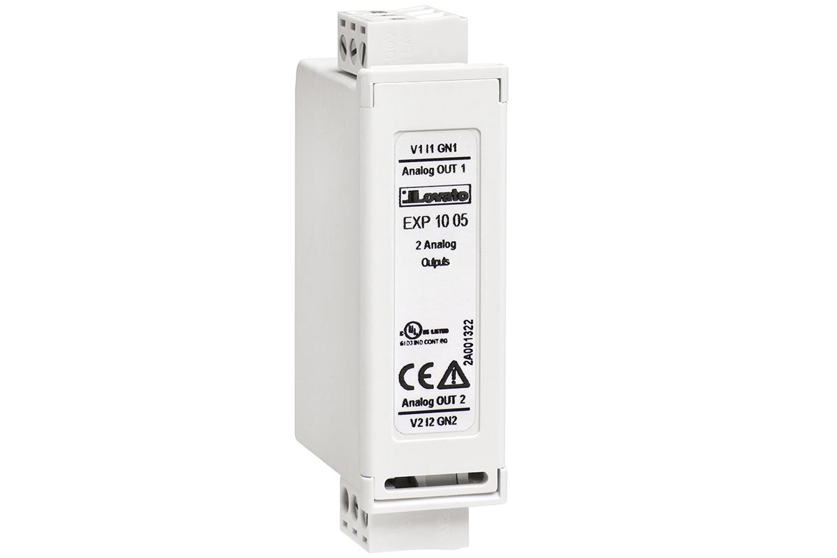 2 изолированных аналоговых выхода: 0/4...20 мА или 0...10 В или 0...±5 В Lovato EXP1005